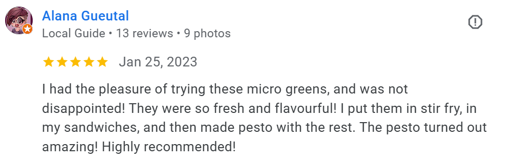 Different Microgreens have different nutritional profiles. We can help to pair you with the microgreens that are best suited to your needs.